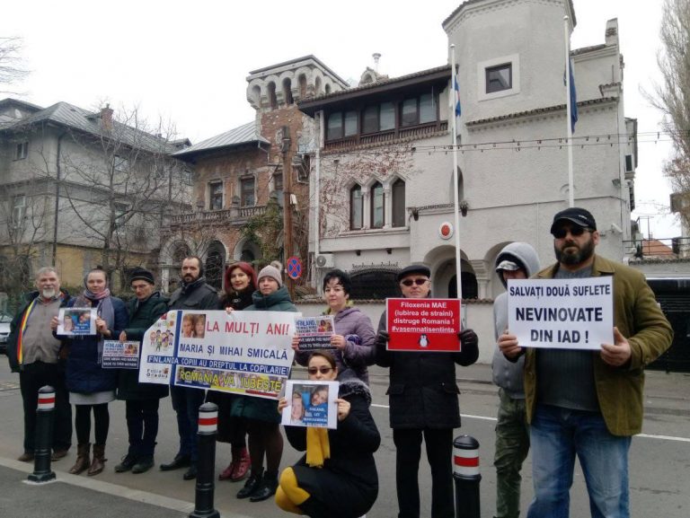 Protest pentru copiii Smicală la Ambasada Finlandei de la București
