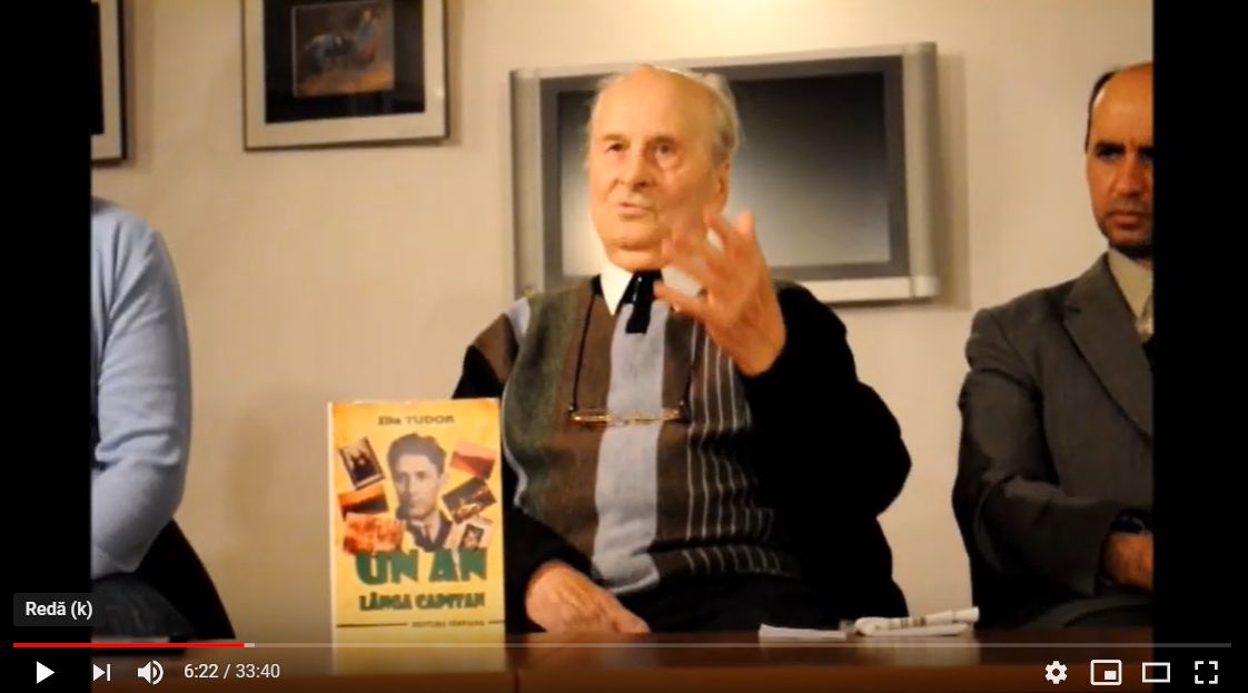 Începem, invitându-vă să petreceți 30 de minute cu regretatul ILIE TUDOR, de la Podari, jud. Dolj, fost deținut politic între 1958-1963, condamnat la 20 de ani detenție sub acuzația de participare la acțiune armată de răsturnare a regimului comunist, în realitate doar pentru trecutul său politic: în 1937-38, fusese unul din cei 70 de copii săraci aduși, la inițiativa lui Corneliu Codreanu, la sediul Mișcării Legionare din București, pentru a deveni comercianți în rețeaua de comerț a renumitei organizații naționaliste.