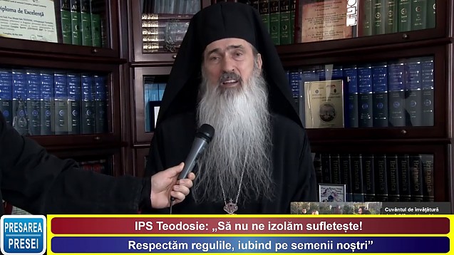 „Da, sigur, trebuie să fie un sinod. Noi nu ne-am putut întruni din cauza acestei… Când ne vom întruni cu prima ocazie, cred că vom statua ceva limpede. Acum s-au adresat cum au putut, ca pe vreme de alarmă și de necesitate. Sigur că în Biserică hotărârile se iau în comuniune. Eu de aceea nu-mi permit să dau sfaturi cuiva. În glasul meu este învățătura Bisericii. Eu nu vorbesc în numele meu personal. Ca ierarh, mă exprim aducând înaintea creștinilor învățătura Bisericii. Pentru că și sfinții părinții spun că unde este episcopul, acolo este Biserica”, a explicat ÎPS Teodosie, Arhiepiscopul Tomisului, în cadrul interviului luat de pr. Eugen Tănăsescu la Radio Dobrogea.