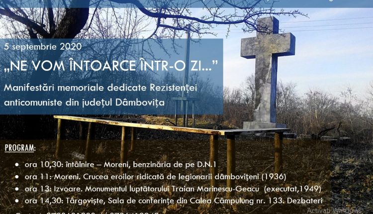 Sâmbătă 5.09.2020, sub genericul „Ne vom întoarce într-o zi…”, în județul Dâmbovița vor avea loc manifestări memoriale dedicate Rezistenței anticomuniste din această regiune.