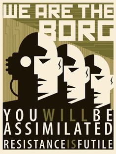 Pentru cei care nu știu, propoziția „rezistența este inutilă” a fost introdusă în cultura populară în „Q Who”, un episod „Star Trek: Generația Următoare” din 1989, în care echipajul Enterprise întâlnește Borg, o comunitate de cyborgi conectați la o inteligență artificială-server prin implanturi cibernetice. Borgul a devenit unul dintre cei mai faimoși dușmani ai universului Star Trek. Dar nu furia sau ticăloșia extremă îi făcea atât de înfiorători. Dimpotrivă. Era inteligența lor rece, calculatoare, asemănătoare unei mașini și obiectivul lor unic de a asimila toate speciile noi în colectivitatea care făcea Borgul atât de înspăimântător.