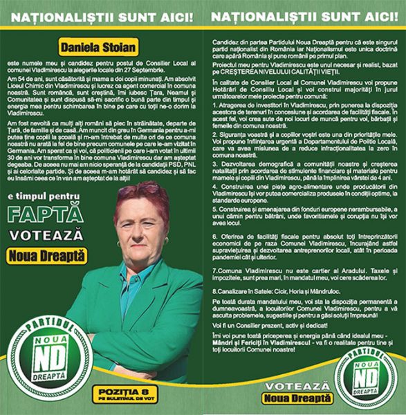 Tot în județul Arad, Daniela Stoian candidează la Consiliul Local al comunei Vladimirescu, cea mai mare comună din județ.