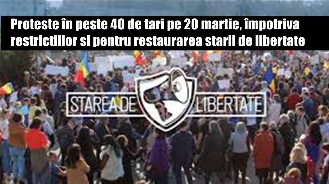 Pe 20 martie este ziua protestelor mondiale împotriva restricțiilor pandemice. Acest lucru este o premieră istorică, fiind pentru prima oară când un protest se organizează simultan în peste 40 de țări ale lumii.