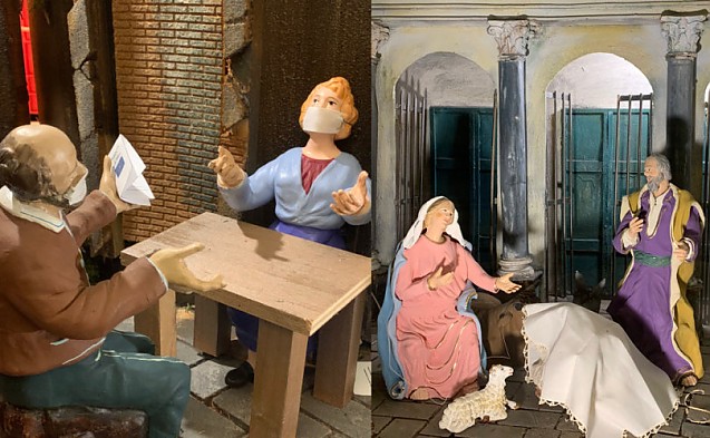 Scena Nașterii Domnului a fost reinterpretată de Bazilica Catolică Sfânta Fecioară din Travestere, Roma. În scenă apar figurile tradiționale ale Mariei și ale lui Iosif cu Pruncul Iisus , în timp ce, călătorii din apropiere, la un han, poartă măști, iar unii dintre ei țin în mână certificatul verde, relatează Life Site News.