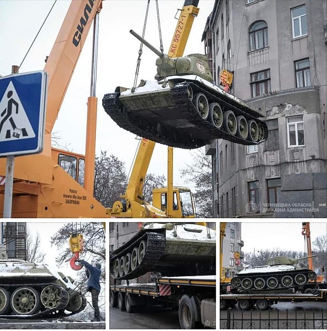 La Cernăuți, tancul sovietic „eliberator” este coborât de pe soclu – cu o întârziere de peste 30 de ani.