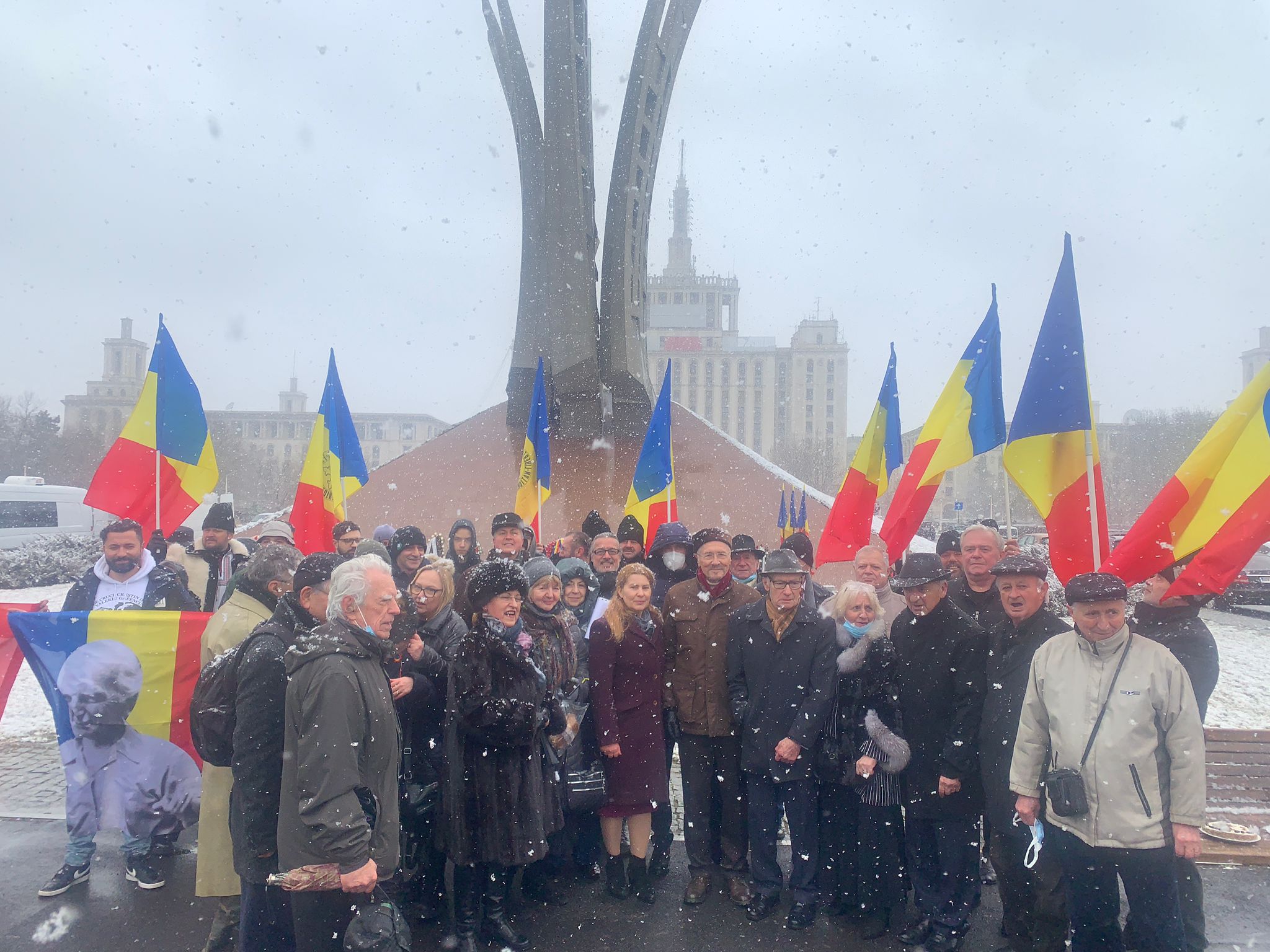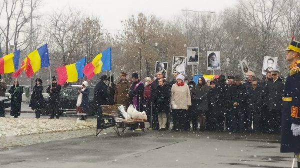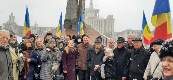 Foștii deținuți politici, omagiați la București, pe o vreme de iarnă