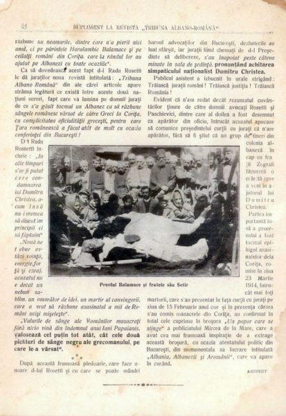 Părintele Haralambie Balamace, împreună cu fratele său, Sotir, şi alţi doi români au fost ucişi în noaptea Sfintelor Paşti a anului 1914, trupurile lor fiind desfigurate prin lovituri de baionetă.