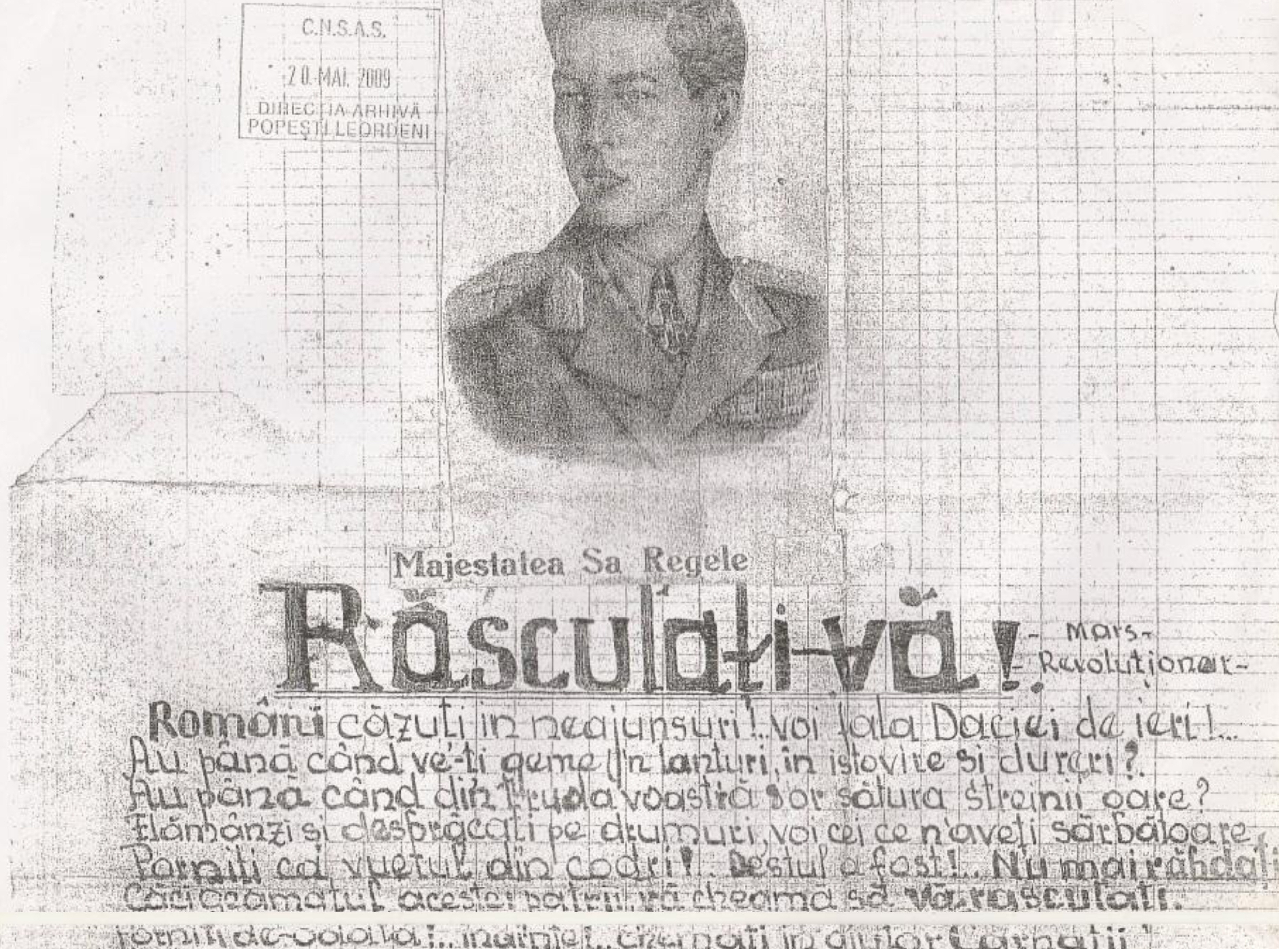 FOTO: Afiş al unei organizaţii clandestine de rezistenţă anticomunistă din judeţul Bihor, 1949 (Arhivele Securităţii)