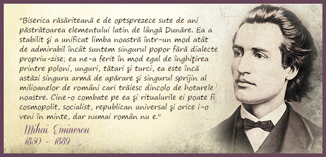 Biserica răsăriteană e de optsprezece sute de ani păstrătoarea elementului latin de lângă Dunăre. Ea a stabilit şi unificat limba noastră într-un mod atât de admirabil încât suntem singurul popor fără dialecte propriu-zise; ea ne-a ferit în mod egal de înghiţirea prin poloni, unguri, tătari şi turci, ea este încă astăzi singura armă de apărare şi singurul sprijin al milioanelor de români care trăiesc dincolo de hotarele noastre.