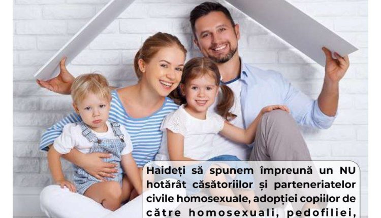 2. Față de intenția unor partide parlamentare de a băga pe gâtul românilor „parteneriatele civile între persoane de același sex”, în disprețul celor 3,5 milioane de români care au votat, în proporție de 92% DA la Referendumul din 6-7 Octombrie 2018 pentru inițiativa legislativă de modificare a Constituției și definirea familiei că fiind întemeiata pe căsătoria dintre un bărbat și o femeie;