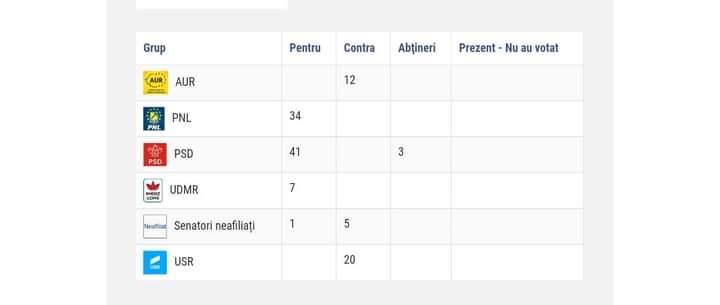 În rest, toți ( restul senatorilor PSD, PNL, UDMR) au votat pentru:
