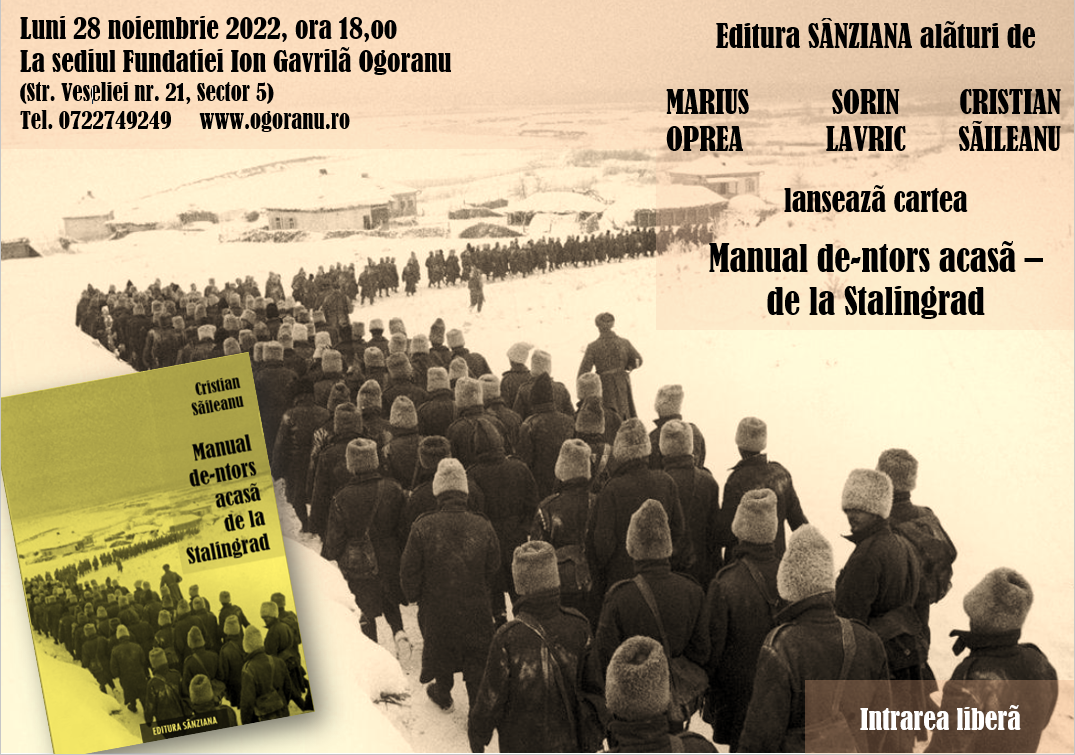 Editura SÂNZIANA, alãturi de Marius OPREA și Sorin LAVRIC vă invită la lansarea cărții „Manual de-ntors acasã – de la Stalingrad” de Cristian SĂILEANU, cu participarea autorului.
