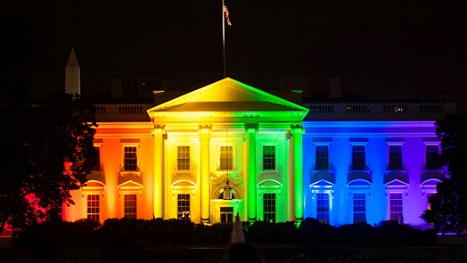 În timp ce Bideu s-a aşezat apoi să semneze lege, a început să răsune hit-ul lui Lady Kaka, „Born this way”, iar Casa Albă s-a „luminat” în culorile curcubeului.