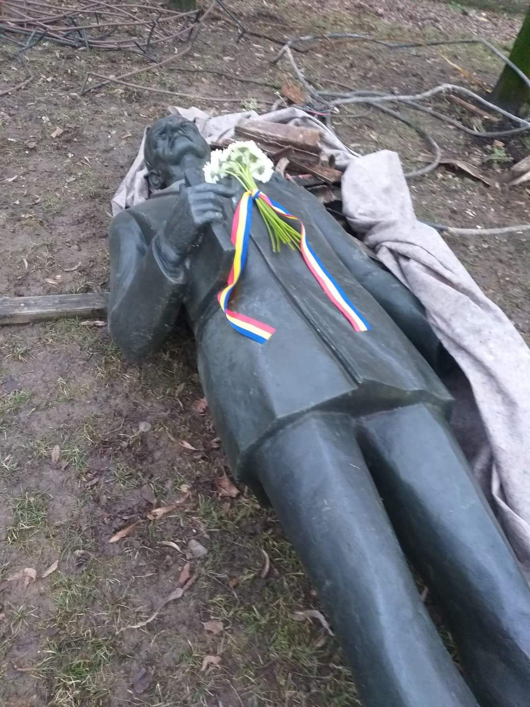 Consternați de imaginea dezolantă: soclul smuls din pământ și statuia omului politic Iuliu Maniu demolată, pusă la pământ și expusă degradării, într-o zonă de șantier din Cluj-Napoca cu câteva zile înainte de comemorarea a 70 de ani de la moartea marelui patriot-martir în închisoarea de la Sighet, condamnăm lipsa de viziune, ignoranța față de cinstirea eroilor neamului românesc.