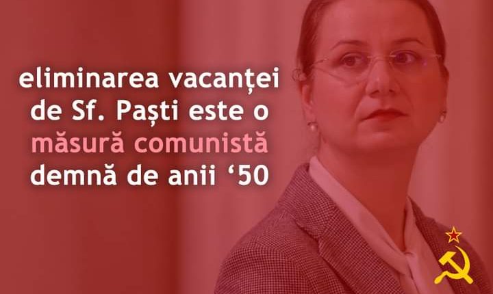 Nu e nicio decizie care ar rima cu perioada comunista. E o decizie New Age-ista. Fara Hristos si impotriva lui Hristos. Ce e mai important decat Invierea Omului, adica Mantuirea omului? Asta inseamna Sfintele Pasti – o Mare Trecere (etimlogic) si o Mantuire Veritabila (o adevarata devenire a omului, dumnezeu, recapatandu-si asemanarea cu Dumnezeu, nu doar haladuindu-si chipul (sufletul) printre tumbe si scalmbaieli mundane, mai mult sau mai putin(sic!) globaliste, mai apropiate sau mai eufemizate de-toaca-sucombatului.
