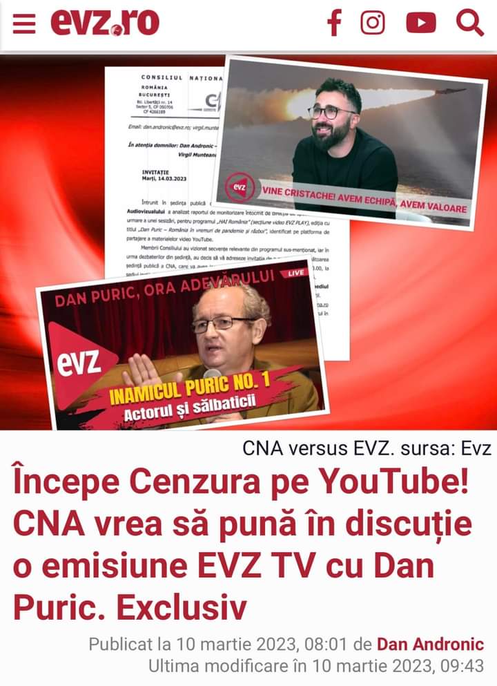 Premieră: CNA ar putea pedepsi o emisiune difuzată pe Youtube! EVZ este chemat la ordine pentru un podcast în care a fost invitat Dan PURIC