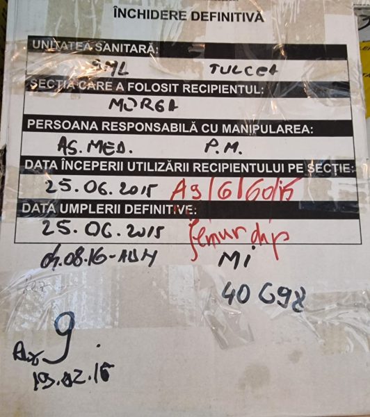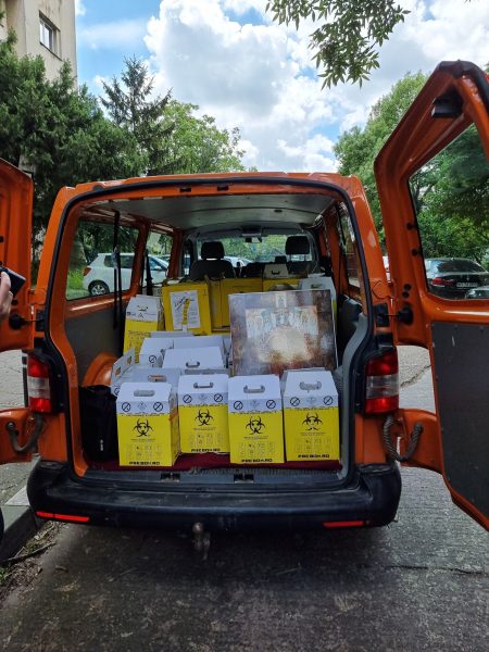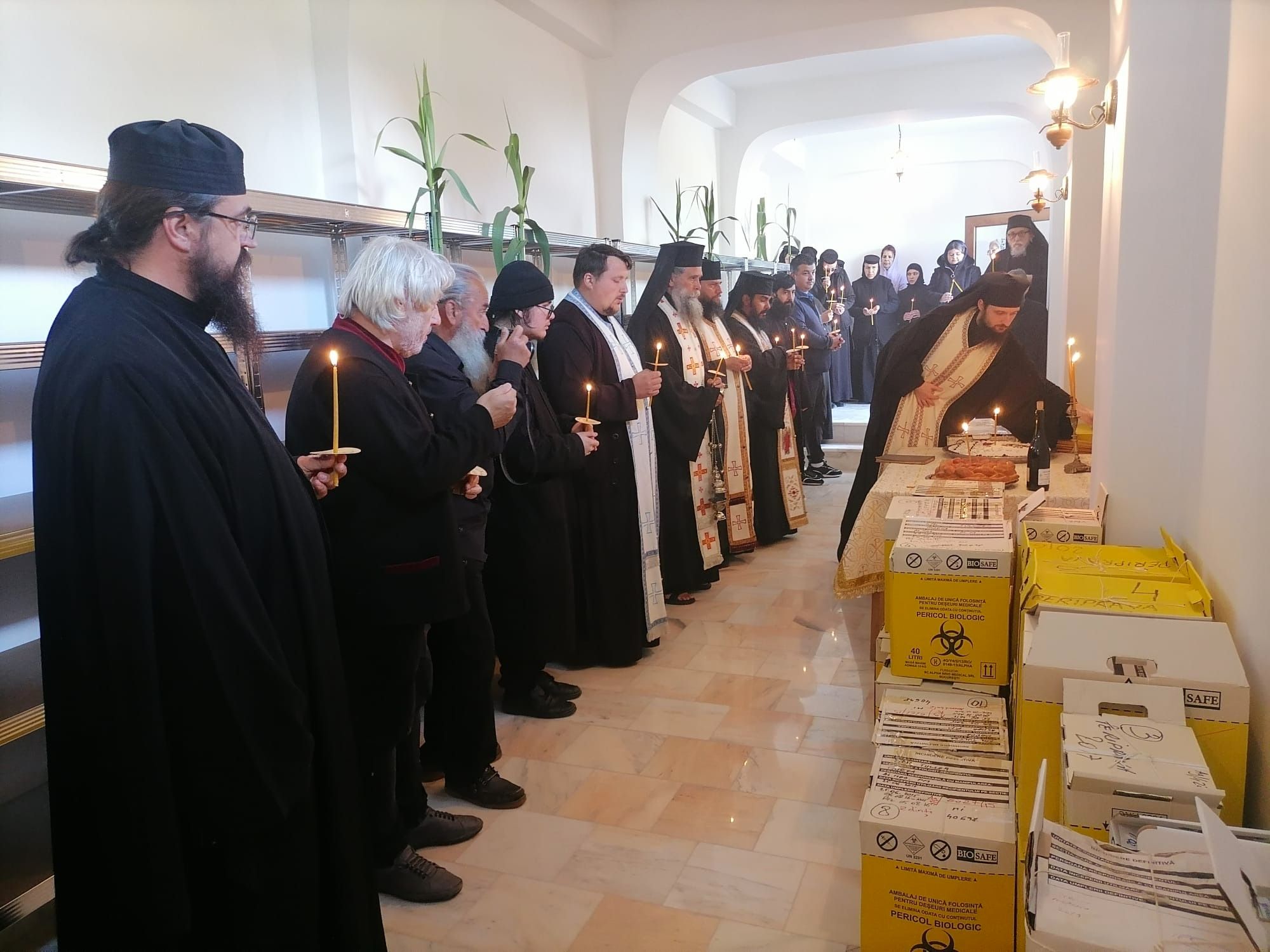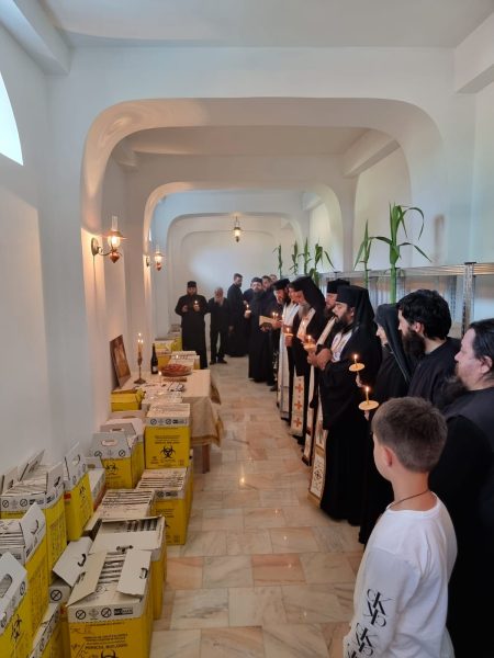 ”Cu moartea pre moarte călcînd”, roțile unei dube galbene cu număr de Constanța a trecut azi la ceasul înserării pe sub clopotnița Mînăstirii Dervent. La volan, părintele stareț Andrei. Lîngă el, eu. În dubă, judicios stivuite, șaptezeci de cutii de carton, preluate la orele prînzului de la Institutul de Medicină Legală din București. Pe cutii scrie ”Deșeuri biologice”.