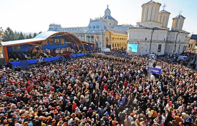 Sfintele Icoane şi Sfintele Moaşte vor fi depuse apoi spre închinare în Baldachinul Sfinților de pe Colina Patriarhiei pentru a fi cinstite de pelerini.
