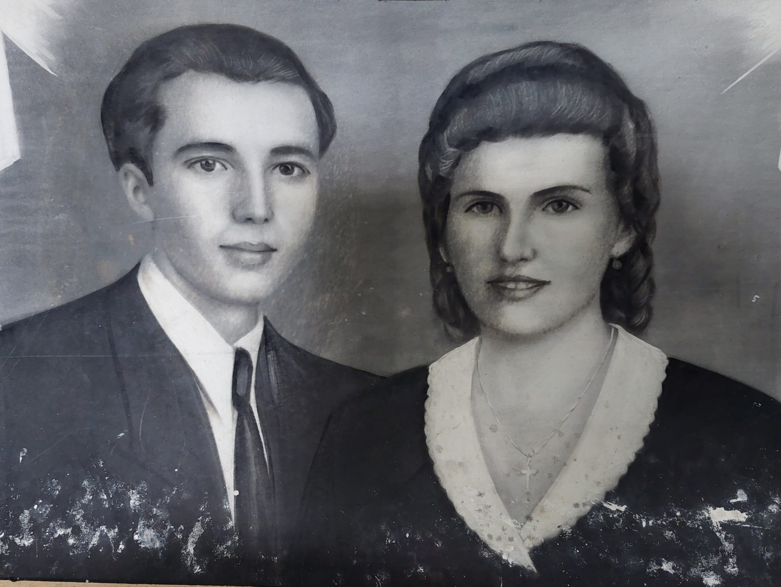Petru Săbăduș ți Ana Mârza, tablou de nuntă. El, capturat de Securitate și ucis în chinuri la Gherla, ea rămasă văduvă, cu doi copii mici.