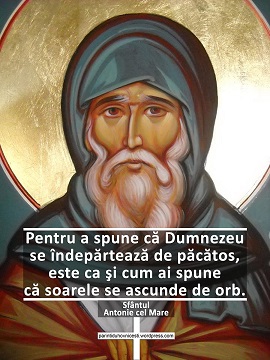 Pomenim astăzi pe Sfântul Cuvios Antonie cel Mare, „părintele monahilor“. Urmând îndemnul Patericului – „Cine vrea să se mântuiască, cu întrebarea să călătorească!“ – vom încerca să-l descoperim pe Sfântul Antonie prin condeiul sfântului său ucenic aghiograf şi prin scrierile unui ierarh român cărturar ce i-a purtat numele după călugărie. „Ca un luceafăr în pustiul Egiptului strălucind“, îl numim pe Sfântul Antonie în Acatistul închinat lui, şi îl cinstim drept monah desăvârşit, ce ne oferă răspunsuri la întrebări despre mântuire.