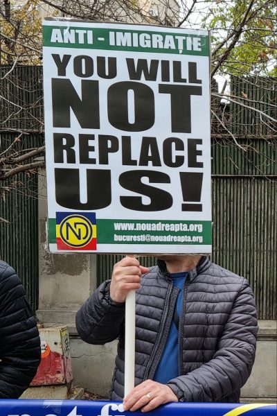 Protestul nostru din fața Ministerului Afacerilor Externe din 22 ianuarie este și o reluare a celei mai mari campanii anti-colonizare de pe teritoriul României, respectiv campania împotriva semnării Pactului Global de Migrație, declanșată de Noua Dreaptă în luna noiembrie a anului 2018, susținută apoi de alte organizații și personalități din mediul civic naționalist. Reamintim că acea campanie a cuprins proteste de stradă, începute cu o manifestație tot în fața sediului MAE și continuată până pe data de 16 decembrie (Marș în București cu peste 4000 de participanți pe traseul Piața Victoriei – Palatul Parlamentului). În urma protestelor de stradă, România s-a abținut, în al 12-lea ceas (Conferința ONU, New York, 17 decembrie 2018), să semneze odiosul Pact de la Marraches (Pactul de Migrație).