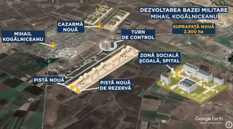 Guvernul a alocat 2,5 miliarde de euro pentru noua bază militară NATO de la Mihail Kogălniceanu, care va găzdui permanent până la 10.000 de militari și familiile acestora, anunță Euronews.ro. Potrivit sursei citate, noua bază se construiește pe o suprafață de aproape 3.000 de hectare, cu un perimetru de 30 de kilometri și va putea găzdui orice tip de capabilități de luptă.
