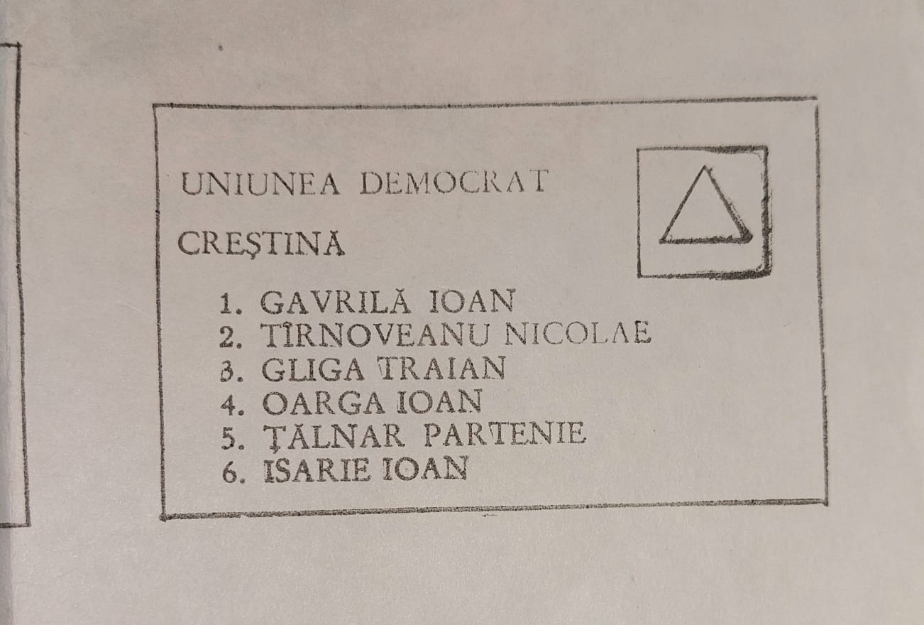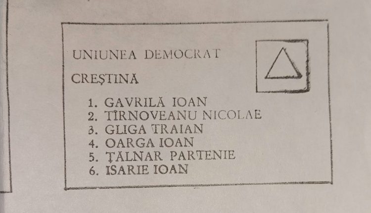 ––-Buletinul de vot pentru Camera Deputaților, în județul Alba, la primele alegeri libere, după 50 de ani de dictatură, cu Ion Gavrilă Ogoranu deschizând lista electorală a Uniunii Democrat Creștine.