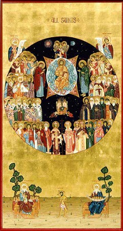 Toti acesti oameni induhovniciti, care au urmat insuflarilor Duhului si au umblat pe caile Lui, au fost stramutati si rasaditi, ca niste mladite de maslin, de pe pamant in cer si alcatuiesc acolo un minunat rai ceresc, in care odihneste Dumnezeu, Cel in Trei Ipostasuri. In fruntea tuturor se afla Preacurata Stapana de Dumnezeu Nascatoare, dupa ea – Sfintii Apostoli si Proroci, pe urma Sfintii mucenici, pastori si invatatori, feciori si fecioare, Cuviosi parinti si maici, si toate celelalte cete de Sfinti. Tocmai acest rai duhovnicesc ni-l zugraveste acum Sfanta Biserica: fiecare sa miroasa dupa puterea sa buna ei mireasma si cu dorire sa doreasca a se invrednici sa fie si el rasadit pe acel fericit taram.