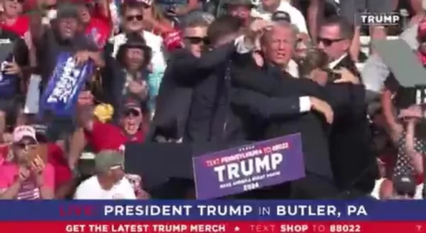 Trump a fost văzut ridicându-se înapoi, cu sânge pe față și a fost condus în afara scenei de către membrii din Serviciul Secret.