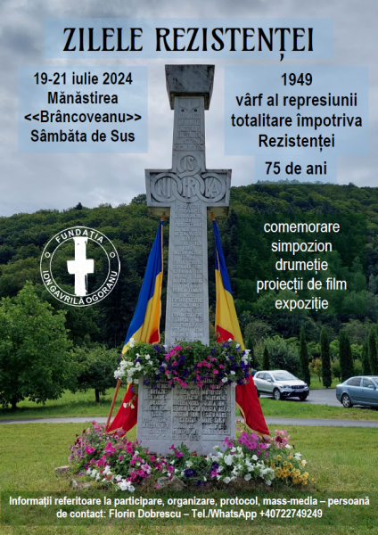Pe această cale anunțăm că ediția a 14-a a Zilelor Rezistenței, serie de manifestări cultural-memoriale organizate de Fundația Ion Gavrilă Ogoranu, va avea loc în intervalul 19-21 iulie 2024, la Mănăstirea Sâmbăta de Sus și va avea următoarele teme: „1949 – vârf al represiunii totalitare împotriva Rezistenței. 75 ani” și „Medici în temnițele comuniste”.