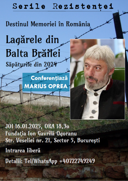 Istoricul MARIUS OPREA va conferenția pe tema deschiderii, în 2024, a săpăturilor pentru găsirea victimelor exterminate de regimul comunist în lagărele din Balta Brăilei.