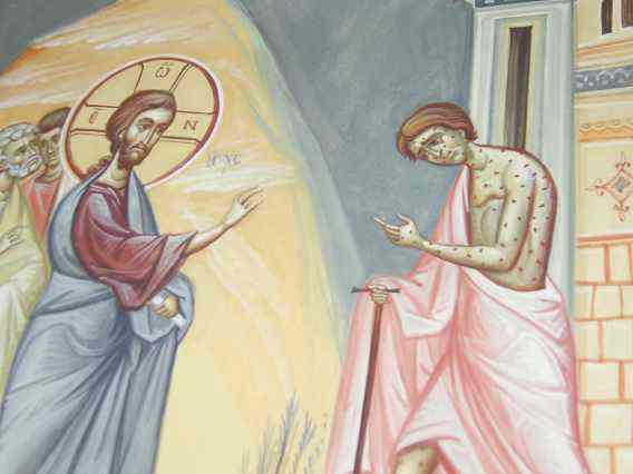 “Intrând într-un sat, L-au întâmpinat zece leproşi care stăteau departe, şi care au ridicat glasul şi au zis: Iisuse, Învăţătorule, fie-Ţi milă de noi! Şi văzându-i, El le-a zis: Mergeţi şi arătaţi-vă preoţilor. Dar, pe când ei se duceau, s-au curăţit. Iar unul dintre ei, văzând că s-a vindecat, s-a întors cu glas mare slăvind pe Dumnezeu. Şi a căzut cu faţa la pământ la picioarele lui Iisus, mulţumindu-I. Şi acela era samarinean. Şi răspunzând, Iisus a zis: Au nu zece s-au curăţit? Dar cei nouă unde sunt? Nu s-a găsit să se întoarcă şi să dea slavă lui Dumnezeu decât numai acesta, şi care este de alt neam? Şi i-a zis: Scoală-te şi mergi; credinţa ta te-a mântuit”. (Luca 17, 12-19).