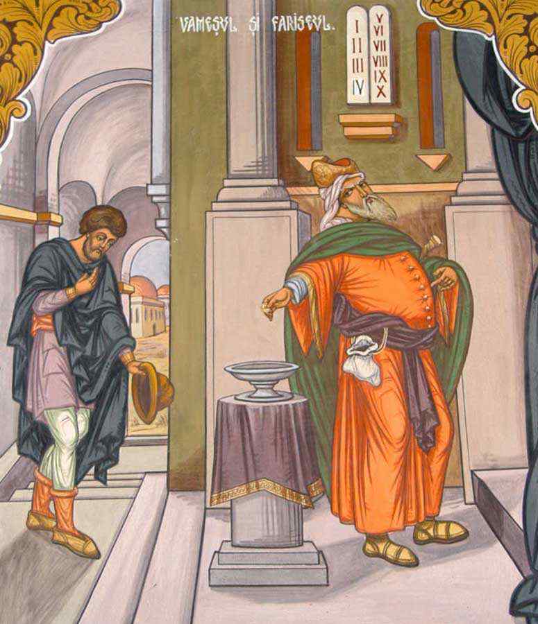 Precum ne talcuieste sinaxarul duminicii, pilda ne pune inainte doua asezari sufletesti: aceea a vamesului, pe care trebuie sa tindem s-o agonisim si cealalta a fariseului, de care se cuvine sa ne ferim si sa fugim, pentru ca smerenia si pocainta vamesului sunt puternica intr-armare impotriva diavolilor, iar mandria si inaltarea fariseului, inceput si izvor a tot pacatul. Caci prin mandrie a cazut diavolul si tot prin ea Adam a fost izgonit din Rai; iar toata tamaduirea a venit prin smerenie, prin smerenia Fiului lui Dumnezeu, Care a luat chip de rob si a rabdat moarte de ocara pe Cruce.