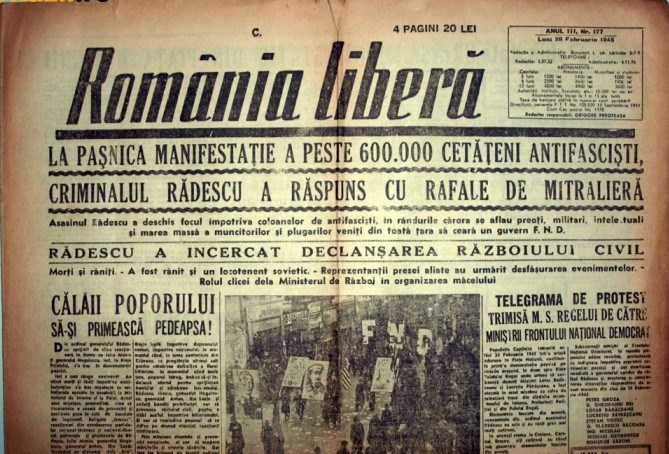 Pe 23 februarie 1945, ziarul comunist “Scânteia” publica pe prima pagină un manifest prin care chema populaţia Capitalei şi pe ţăranii din Ilfov să ia parte la o manifestaţie organizată de Frontul Naţional Democrat (camuflajul politic al PCR) în Piaţa Naţiunii (azi Unirii) din Capitală.