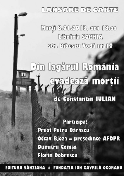 lansarea volumului memorialistic al regretatului luptator anticomunist CONSTANTIN IULIAN –„DIN LAGARUL ROMANIA EVADEAZA MORTII”