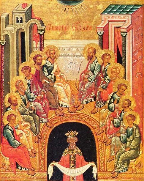 În al său ”Cuvânt începător”, Evanghelistul Luca spune cum Hristos și-a încredințat apostolii că ”Veți lua putere și îmi veți fi Mie martori în Ierusalim și în toată Iudeea și în Samaria și până la marginile pământului”. După Înălțarea Sa, apostolii s-au adunat și au stat în rugăciune, ”împreună cu femeile și cu Maria, mama lui Iisus” și, mai întâi, au ales pe Matia ca apostol în locul lui Iuda, cu sens de ”dar al divinității”. Așa au stat în rugăciune până în cea de a cincizecea zi. O ”coincidență semnificativă” cum ar denumi-o Jung face ca în Psalmul 50, David cerând ”bucuria mântuirii Tale” adaugă și ”cu duh stăpânitor mă întărește”. Sf. Ioan Gură de Aur, pune în evidență că ”Prin Sfântul Duh am dobândit și iertarea păcatelor noastre, prin care El ne-a curățit de toate păcatele prin darurile Sale, oamenii care se povățuiesc de harul Său se fac îngeri nu pentru că își schimbă firea, ci ceea ce este mai minunat prin aceea că ei, deși rămân oameni, se poartă așa de curat și sfânt ca îngerii”. De aceea și spunem că Sfinții sunt ”îngeri în trup de om”.