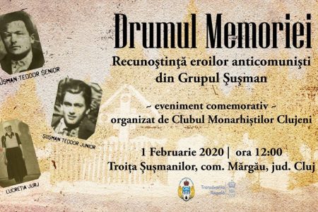 Sâmbătă, 1 februarie 2020, începând cu ora 12.00, Asociaţia Clubul Monarhiştilor Clujeni va organiza o slujbă de pomenire a luptătorilor anticomunişti din Grupul Şuşman. Parastasul va fi oficiat la munte, în comuna Mărgău, la mormântul lui Teodor Şuşman, situat lângă drumul judeţean care coboară spre Valea Firii, între Răchiţele şi Doda Pili. La ceremonialul comemorativ-religios va fi prezent şi preşedintele Asociaţiei Foştilor Deţinuţi Politici din România, domnul Octav Bjoza, care, cu o zi mai devreme, în 31 ianuarie 2020, începând cu ora 12.00, va avea o întâlnire cu elevii Liceului Teoretic “Octavian Goga” din Huedin.