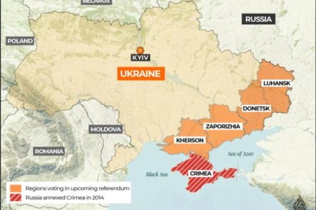 Acestea sunt primele două regiuni ucrainene care au votat în favoarea anexării de către Rusia de la începutul ofensivei ruse în Ucraina, pe 24 februarie.