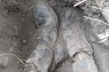 Ionuț Mihăiță Ocoleanu, Facebook:”Batalia de la Odessa, 1941. In imagine un militar român descoperit în acele pământuri (încălțămintea, osemintele…).