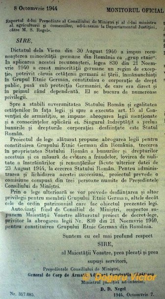 Raport 1944 Grupul Etnic German – Monitorul Oficial